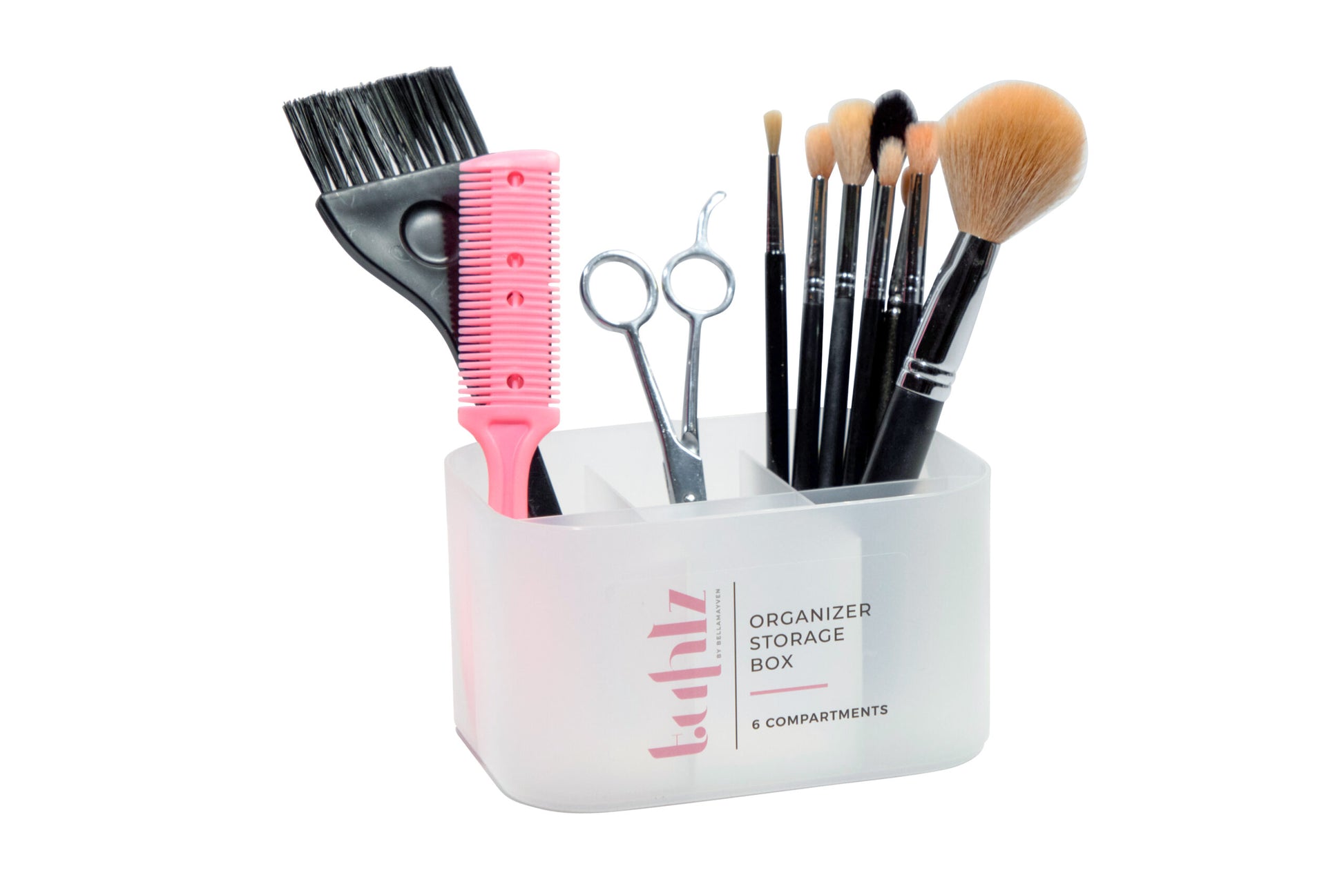 6 compartment organization box. Use to store brushes, lipsticks + other items